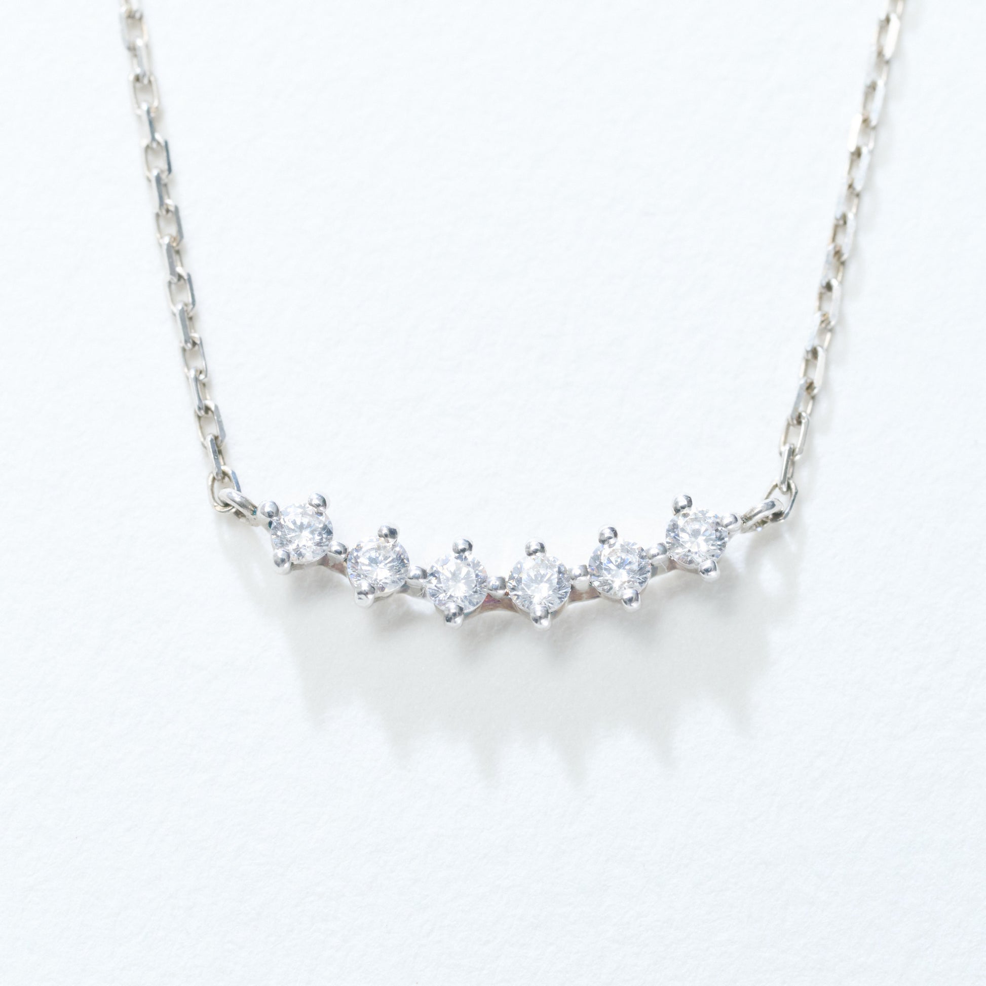 氷の結晶が連なるように6石のキュービックジルコニアが緩やかなカーブを描くネックレス。
