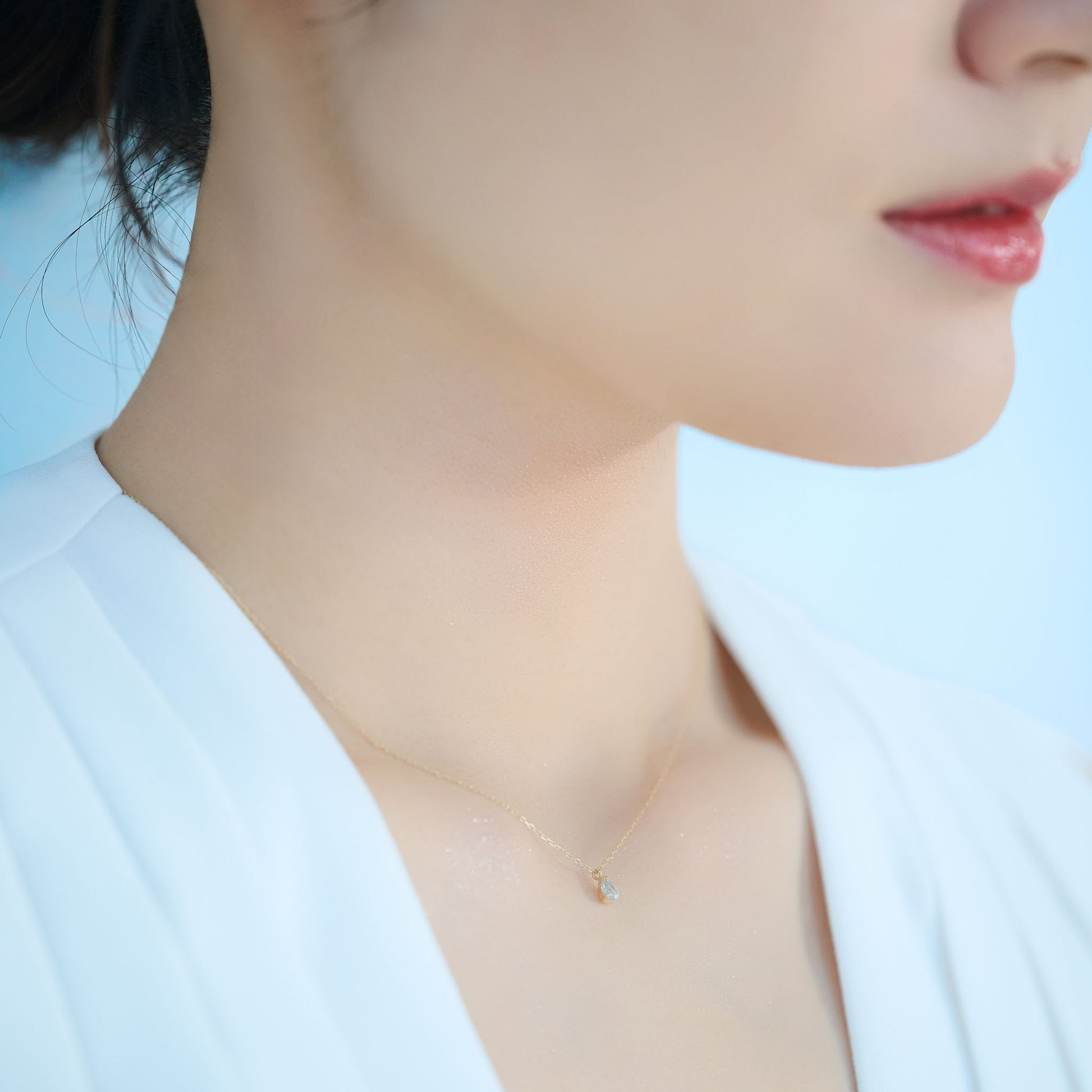 レストランでのディナーや大切な記念日に。氷が溶けて滴るような儚げな輝きが、首元をエレガントに彩ります。ワンピースやドレスとの相性も抜群。