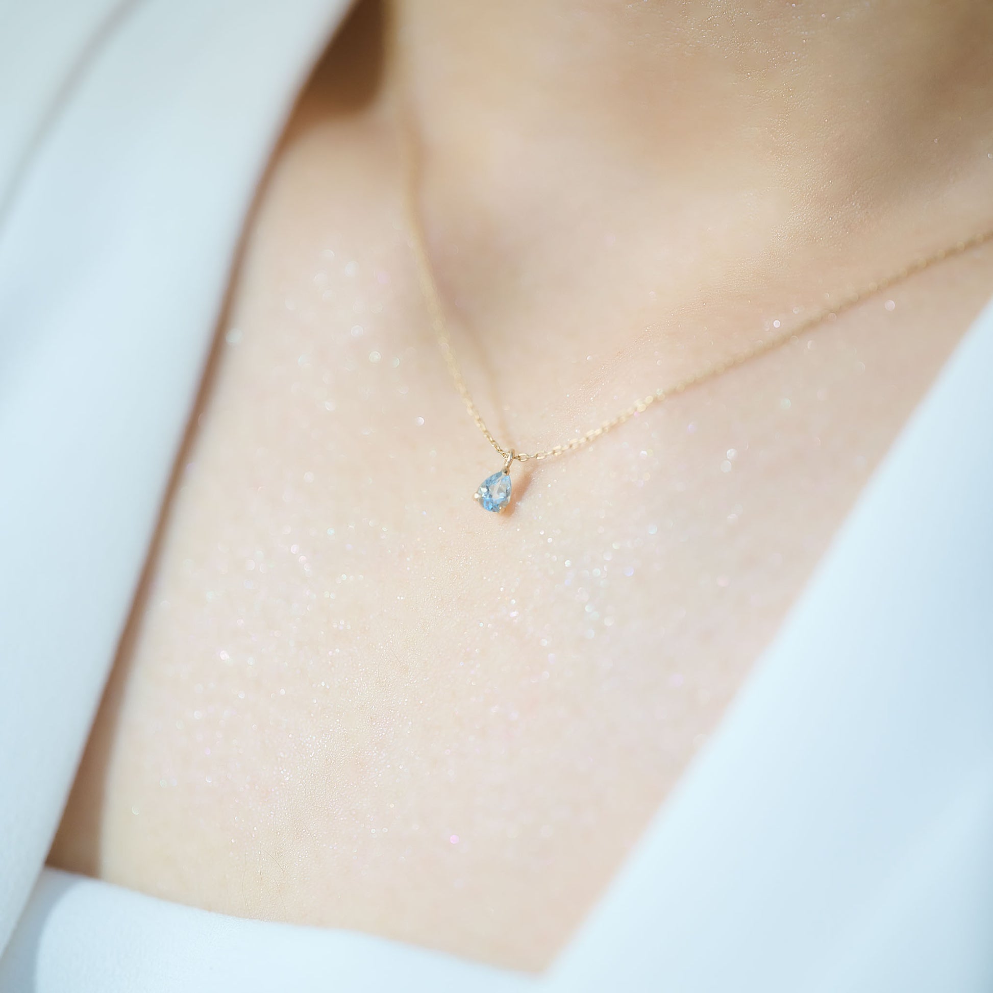 通常のラウンドカットとはひと味違う『ペアシェイプカット』のアクアマリンが、氷が溶けて滴る瞬間を閉じ込めたように透明感あふれる輝きを放つネックレス。K10イエローゴールドの柔らかな煌めきとともに、首元に清らかで儚げな印象を添えます。毎日の装いを輝かせ、あなたの美しさと自信を引き出すジュエリー。